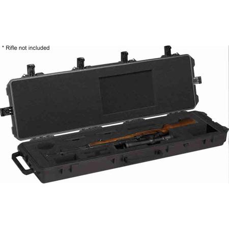 Injection molded Pelican Storm Case with HPX resin plastic body with polyethylene foam cushion designed to fit one M14 or M25 (with attached scope), bipod cleaning kit and (4) spare magazines with room for additional accessories.