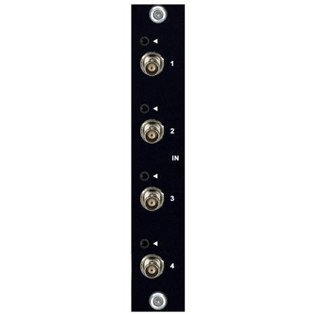 The PM-SIS4 is an input card for a PureLink PM Switcher, providing four 3G/HD-SDI ports with four stereo in ports via female 3.5mm jack.