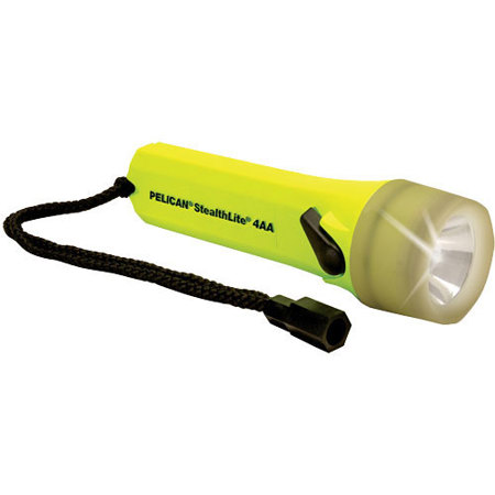 Same features as the StealthLite 2400 Flashlight, but outfitted with a lens ring that emits a bright glow in the dark. The new generation photoluminescent material in the plastic absorbs the energy from any light source - fluorescent lights, the sun or even the flashlight's own beam. No more fumbling in the dark for your flashlight. It is submersible and powered by 4 AA alkaline cells (included).