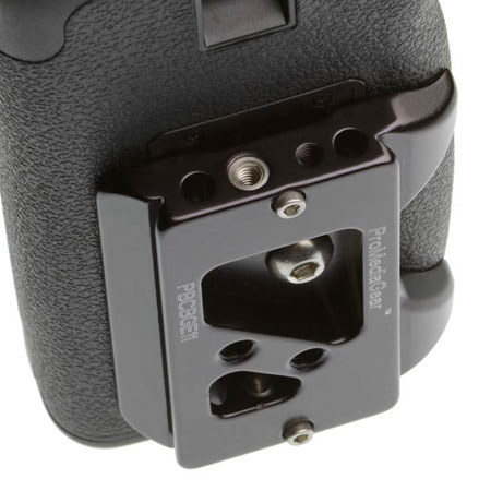 ProMediaGear flash bracket plate is custom made specifically for Flash Brackets or L-Brackets for the Canon 5D Mark III + grip. The plate has been machined from solid aluminum T6061 block and black anodized for scratch resistant finish. It features a removable strap loop that can be removed if desired. The loop is mounted via a stainless steel screw that also acts as a safety stop.
