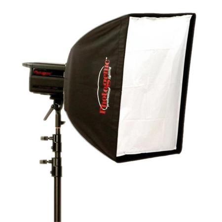 Square 22" box with front and internal diffusion panels, speed ring, rods and case with handles. 14" depth.