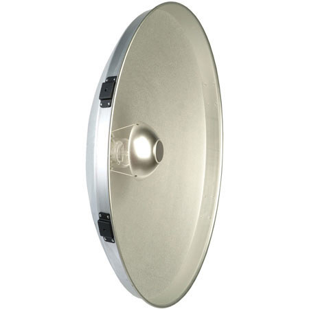 Satin- anodized 24 Inch diameter reflector offers 100o (degrees) angle of coverage for indirect flood, soft illumination and superb controllable source lighting. Accepts PL24BD barndoors
