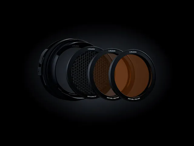 Designed specifically for Profoto Off-Camera Flashes (OCF), this kit includes the OCF II Grid & Gel Holder, OCF II Grid 20 Degree, OCF II-Half CTO, and OCF II-Full CTO gels. The holder mounts directly onto any Profoto OCF flash, ensuring a secure fit thanks to the durable Profoto rubber collar mount and metal clasp.