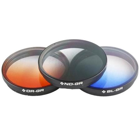 Includes 3 gradient filters: ND8, Orange/Tobacco, Blue