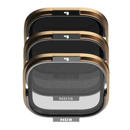 The Shutter 3-Pack of neutral density filters for the GoPro HERO 8 Rollcage Protective Sleeve allows action-enthusiasts and FPV pilots to reduce shutter speed to cinematic levels. The set includes three essential filters, an ND8, ND16 & ND32- ideal for mid-day or bright environments.