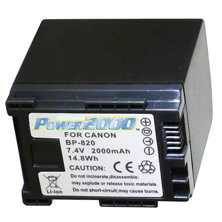 Power2000 BP-820 7.4V 2000mAh Replacement Lithium-Ion Camcorder Battery for Canon.