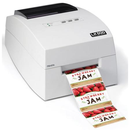 The LX500 prints full-color, photo-quality images and bar codes on highly water-resistant and scratch-resistant labels. Print resolution is 4800 dpi. Label print width can be as narrow as 0.75" and as wide as 4". Maximum label length is 24". LX500 includes one dye-based color ink cartridge, BarTender UltraLite Primera Edition software, printer drivers for Windows 2000/XP/Vista or Mac OS X 10.2 or higher, starter roll of 4x3" Tuff-Coat High-Gloss Inkjet Label Stock, USB 2.0 cable and instructions.
