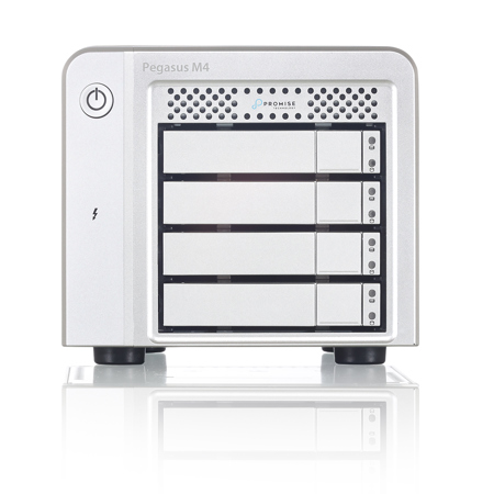 The Pegasus M4 combines the robust Promise RAID engine - renowned for stability and high performance, with the high throughput of Thunderbolt. Pegasus M4 is housed in a compact four-bay enclosure utilizing pre-installed enterprise-level high endurance SSD. The M4 is a perfect fit for on-the-go creative media professionals.