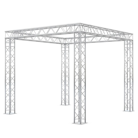 This truss package is designed to support a wide range of accessories for exhibitions, trade shows, live mobile productions, outdoor performances, and permanent installations. It can be used to hang lighting, screens, speakers, signage, time clocks, LCD panels, and announcer sound systems.