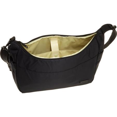 Trust the Pacsafe Citysafe 200 GII anti-theft black handbag to look after your gear while you're soaking up some sun, heading to a spa or posing in front of the Eiffel tower. This classic yet contemporary shape not only looks good, it discreetly hides Pacsafe's innovative anti-theft technology and keeps your identity and personal information safe from identity thieves with an RFID safe blocking pocket.