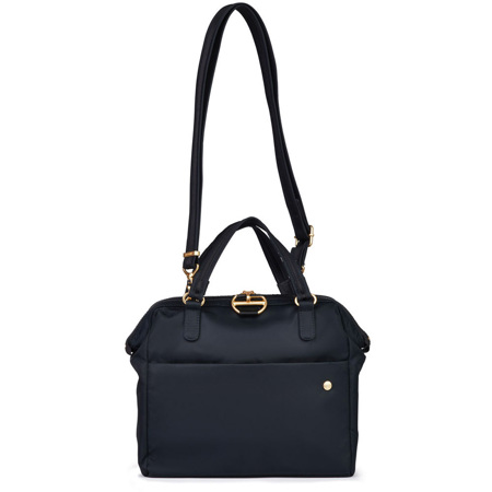 The elegant satchel that inspires confident composure. Innovative anti-theft features keep your valuables protected while a timeless looking design has space for your phone, wallet, makeup pouch, headphones and even a tablet.