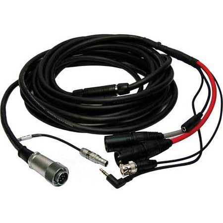 10-pin Hirose male and 5-pin Lemo male to 2 x XLR male with return, 3.5mm stereo mini male and female and a BNC TimeCode
