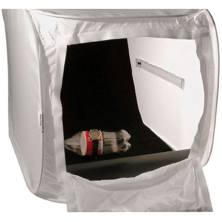 The LIGHTHOUSE can be lit from the sides, top, back, front or can be placed on a shooting table for bottom illumination. It also includes a removable Black Sweep that aids in preventing shadows on the background and provides complete separation from the item being photographed. Also included is a removable plastic base, forming a rigid bottom for ease of product placement.