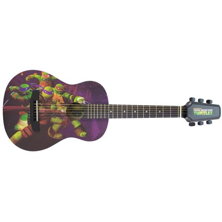 Your favorite officially licensed Nickelodeon Teenage Mutant Ninja Turtles characters adorn these quality junior-sized acoustic guitars! Easy to play and stays in tune, these starter guitars are made of real wood with steel strings and come with Peavey picks and a TMNT guitar strap. Includes a removable headstock cover and matching graphic - protecting little fingers from string ends.
