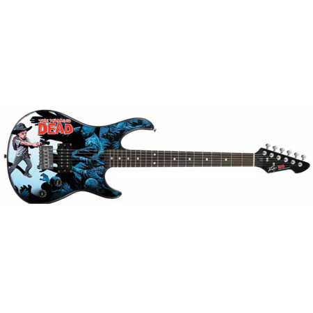 The Rockmaster guitar, Peavey's most affordable full-size guitar, is now available with officially licensed The Walking Dead characters in a high gloss finish on a basswood body, providing excellent balance, playability and tone. With a maple neck and rosewood fretboard for fast rhythm and lead playing, plus sealed tuner gears and an adjustable bridge to keep your guitar in tune longer, the Rockmaster guitar is ready to rock. Comes with cable and picks.