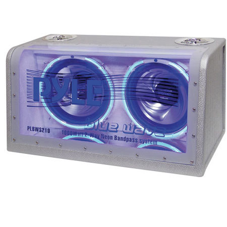 These two 1000 W 10" subwoofers are designed with a specially treated black rubber edge suspension, so the only vibrations you'll be hearing will come from your music. The silver polypropylene cones provide maximum boost and extend the life of your product and ensure the safety of your vehicle. And this subwoofer doesn't just sound great - it looks great too, thanks to the plexiglass front window and blue neon speaker rings. Feel the bass with Pyle's bandpass subwoofers.