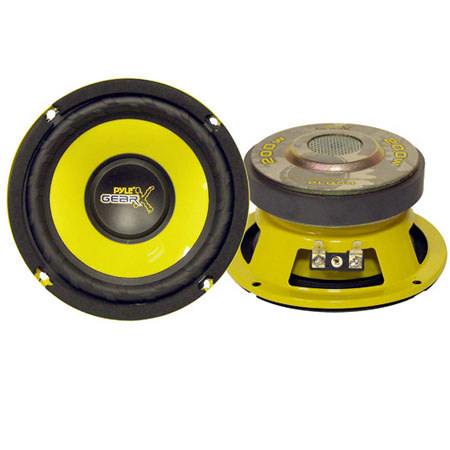 The Pyle PLG54 5" 200 Watt Mid Bass Woofer is designed to provide the best quality sound for the budget-minded enthusiast. This 5" woofer has 200 watts of pure power supported by a high temperature voice coil to boost the low end. Hear the rumbling lows of your favorite music thanks to the 30 oz. magnet structure. The non-fatiguing butyl rubber surround and yellow-color poly-injected cone provide a sturdy foundation for keeping your sound crystal clear and distortion-free. To boost performance, this woofer has been equipped with a strong capacitor, meaning your speakers will never struggle for power. This Woofer looks cool, too, thanks to the yellow coated steel basket.