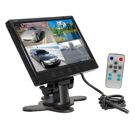 The Pyle PLHRQD9 is a unique, 9-inch quad-view TFT monitor (Black) is designed for in-vehicle and security applications. Connect up to four video inputs to this monitor and then view them in a variety of modes: single view, split dual video and quad four sources view. The reverse function allows you to flip a monitor's contents, such as a rear backup camera. A wireless, fully functional remote control is included to change sources and adjust video settings. This monitor is universal stand compatible for a variety of mounting options - or mounts these monitors to the back of a headrest. The included headrest shroud allows you to hide the monitors from onlookers when you are away from your vehicle for security.
