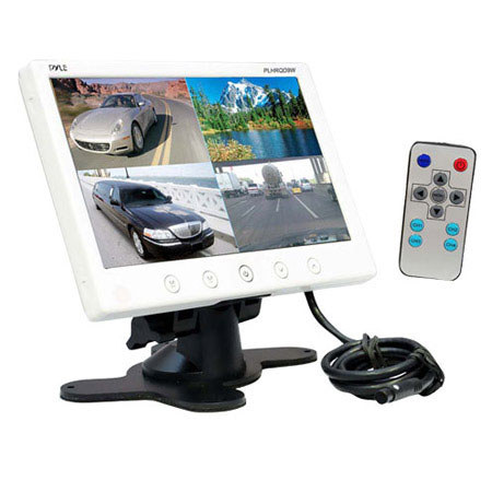 The Pyle PLHRQD9 is a unique, 9-inch quad-view TFT monitor (White) is designed for in-vehicle and security applications. Connect up to four video inputs to this monitor and then view them in a variety of modes: single view, split dual video and quad four sources view. The reverse function allows you to flip a monitor's contents, such as a rear backup camera. A wireless, fully functional remote control is included to change sources and adjust video settings. This monitor is universal stand compatible for a variety of mounting options - or mounts these monitors to the back of a headrest. The included headrest shroud allows you to hide the monitors from onlookers when you are away from your vehicle for security.