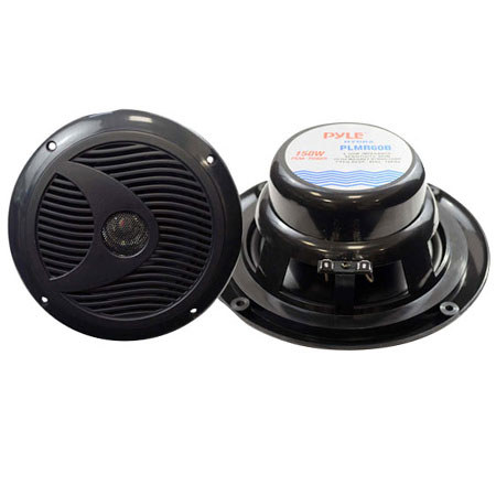 The Pyle PLMR60 6.5" Dual Cone Waterproof Stereo Speaker System (Black) is perfect for your boat or other marine applications, providing great sound on land or at sea. The 2-way waterproof construction and black trim give these speakers a touch of elegance. The 1" aluminum voice coil provides quality mid-range, while the 1/2" dome tweeter fills in the high end. It all sits in a molded ABS basket that keeps your equipment safe and increases its longevity.