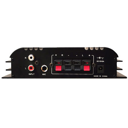 The Pyle PFA400U 100 Watts Class-T Hi-Fi Stereo Amplifier is a class-T digital amplifier with up to 100 watts of power. Use it in your car, your boat, your RV, your golf cart, your home - anywhere you need a great amplifier with low distortion and acoustically accurate reproduction of music. Plus, the PFA400U is equipped with an SD card slot and USB port, so you can plug in a card or stick with your favorite MP3s already loaded. It is adjust the bass and treble to your liking, or bypass the included EQ. it takes 3.5mm stereo jack input stereo RCA and ¼" microphone. It features 2-8 ohm speaker impedance compatible.