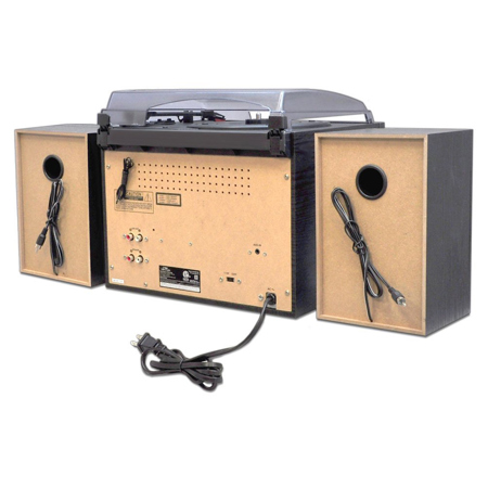 The two external stereo speakers will fill any room in the house with crisp stereo sounds while the vintage design will make this turntable the centerpiece to any room.