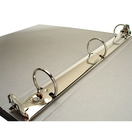 Bex Binders.... Available in 5 colors, black, gray, brown, white and red, and 1/2" and 1" capacities. The black books feature a gray interior, and the gray books are lined in black.