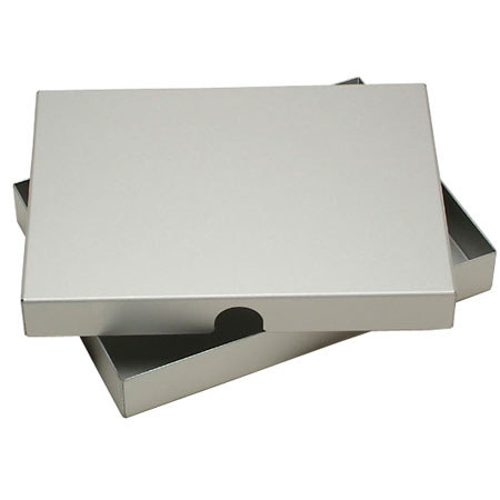 • Present and store artwork, photos and documents in our new anodized aluminum boxes, available in twelve practical formats. These sleek pan and lid boxes feature finger notches on the side to facilitate removal of the lid. The 1" presentation boxes are available in 4x6, 5x7, 8x10, 8.5x11, 11x14, 11x17, 13x19, 5x5, 10x10 and 12x12. The 2" storage boxes are available in 4x6 and 5x7. Nylon presentation jackets are available for all sizes, sold separately as an accessary.