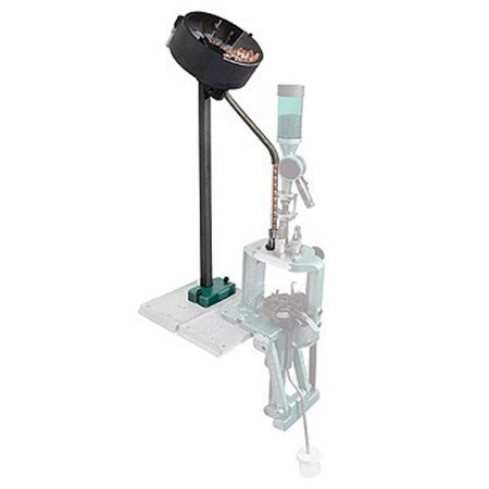 The RCBS .22 Caliber Rifle Bullet Feeder is designed to fit on most progressive presses that use 7/8"-14 threaded dies. The 110 Volt collator unit orients the bullets to drop into the feed mechanism. The hopper holds approximately 250 (55 grain) bullets. With this the average reloader can increase their loading rate by at least 50%. This unit is not designed to work with cast bullets.