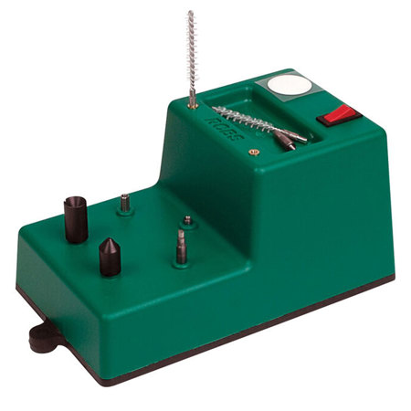 The RCBS Trim Mate Case Prep Center, 110V helps to make the tedious tasks of chamfering, deburring, primer pocket cleaning, military crimp removal and flash hole deburring quick and effortless. The five gear driven heads turn each tool so all the reloader has to do is hold the brass at the appropriate location until they are satisfied with the results. The station includes two stationary positions for case neck brushes or other accessories and a cupped area for holding dry case neck lube.