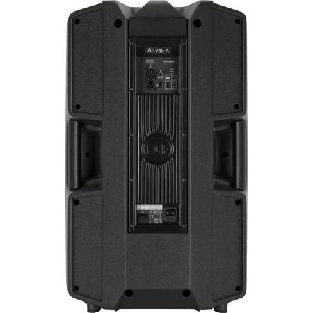The RCF ART-745A 1400W 2-Way Active Speaker features a titanium dome and 4.0" voice coil neo compression driver that offers a unique vocal clarity and sound projection. The 15" neo woofer offers an extremely linear response and a precise, deep low frequency control.