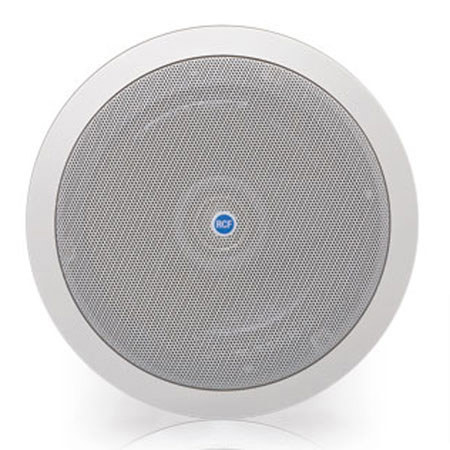 The RCF PL 8x is a ceiling speaker featuring elegant design that can be flushmounted in false ceilings or panels. It can also be attached to walls or ceilings using a special accessory for surface mount installation. The PL 8x incorporates a 200 mm (8") loudspeaker and a coaxial 25 mm (1") tweeter placed on a bridge support and it is equipped with a line transformer that enables direct connection to constant voltage systems at 70 V or 100 V. When connected to a 100 V line, its power can be selected among the values 20 W, 10 W, 5 W or 2.5 W through the selection 6 inputs wire. Installation is quick and easy thanks to a special three-terminal system that avoids the need for using screws or other attachment elements.