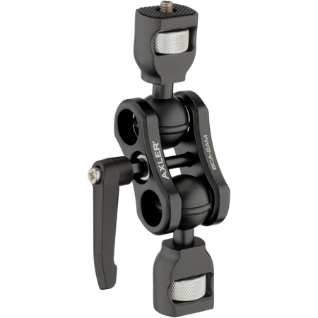 The Axler 5.5" Mega Ball Clamp Arm (model BCA-2) is a versatile mounting solution for photographers and videographers, designed to attach various accessories to camera rigs, cages, or cheese plates. Its design incorporates two articulating ball joints that offer more than 180° of movement, which are locked or loosened simultaneously by a single, spring-loaded center ratchet lever.