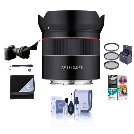 The internal focusing design of the ROKINON AF 18mm utilizes a STM (Stepless Motor) for quiet, smooth and precise autofocusing to 9.8". This also prevents both changes in length and front element rotation to enable easy use of 58mm polarizing and other lters that require precise positioning. This compact wide-angle optic is designed with a metal mount and glass strengthened composite material to reduce weight while increasing durability.