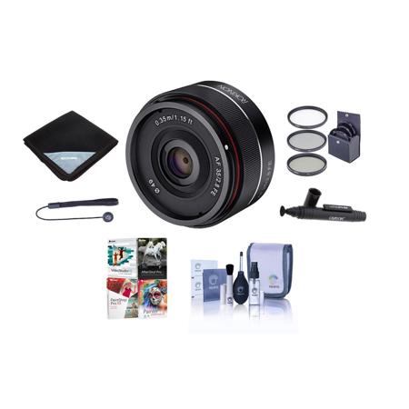 This ultra-compact lens for Sony camera mounts, with a 35mm focal length and f/2.8 maximum aperture, keeps things low-profile while giving you real options during a shoot. Rokinon's 7-element aspherical glass optics deliver crisp, clear visuals, and the autofocus element takes the guesswork out of shooting from the hip. The standard lens diameter of 49mm also keeps things simple when you need caps, hoods, or filters, unlike the compact lenses some other brands offer.