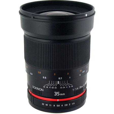 The Rokinon 35mm f/1.4 Wide Angle Lens for Pentax gives you an approximately 43deg. view when used with an APS-C camera, or 63.1deg. when used with a full-frame camera-excellent for general photography and portraits. With hybrid aspherical lenses and multi-layer coating, you will produce sharply defined images with a minimum of flare and ghosting. The 35mm lens focuses as close as 1' (30.48 cm) from the lens and has a removable petal lens hood.