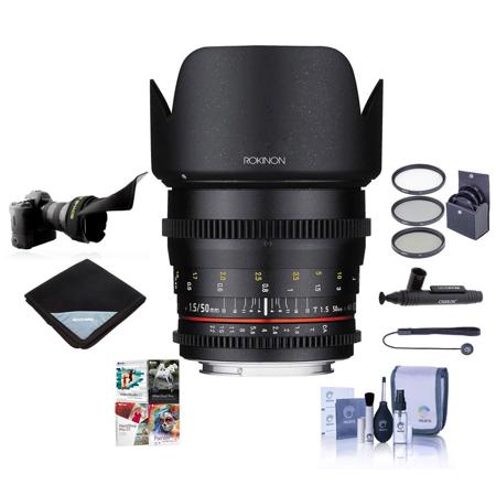 The Rokinon 50mm T1.5 Cine DS Lens for Canon EF Mount is a fast manual focus prime lens. It provides a very fast maximum aperture of T1.5 for effective low light capture and shallow depth of field control and an 8 blade iris for attractive bokeh. Optimized for cinema and video applications, the focus and aperture control rings are outfitted with industry standard gearing, which provides an interface for working with a traditional follow focus. The aperture control ring has also been de-clicked, which enables smooth iris pulls. In addition, bright aperture and distance markings are printed on the lens barrel facing laterally to facilitate easier control by a focus puller.