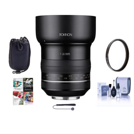 Rokinon SP 85mm f/1.2 High Speed Lens for Canon EF, Bundle with ProOptic 86mm UV Filter, Lens Case, Cleaning Kit, Lens Cap Tether, PC Software Kit
