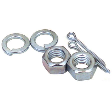 The pack comes complete with two high-quality locking washers and two robust nuts, specifically designed for the front casters. These components provide a secure fit and superior stability, ensuring your cart's front wheels are firmly attached and ready for any terrain.