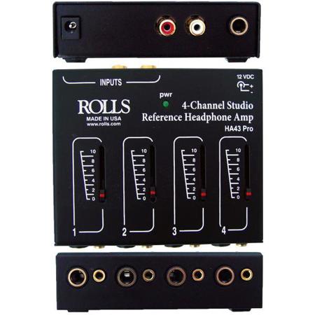 The Rolls HA43 Pro 4-Channel Studio Reference Headphone Amplifier is a full frequency response headphone monitoring device designed for the recording studio, or other professional applications like listening rooms and monitoring stations. Each output boasts a whopping 20 dB of clean channel gain.