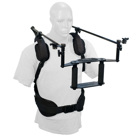 Ready Rig DSLR is a camera weight support system with included camera mounting plate. Their patented system utilizes spring-loaded technology with four-point stabilization and two adjustable stabilizing rods to steady the camera, offers greater flexibility and maneuverability and achieves a variety of camera angles fluidly while enabling hands-free operation to pull focus, zoom or adjust camera settings. The innovative Monitor Wing Mount positions a LCD monitor (monitor not included) directly in the camera operator's sightline at all times and at every camera angle. Additional Accessory Plate available.