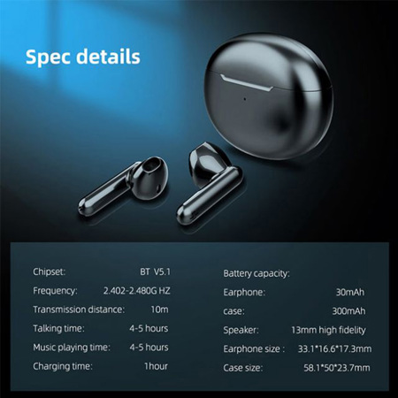 Earphone: 1.3 x 0.65 x 0.68" (33.1 x 16.6 x 17.3mm)
