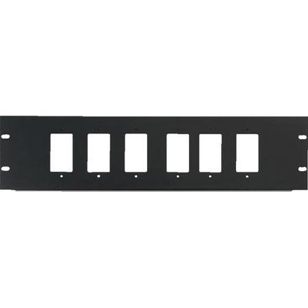 The Raxxess 3U Rack Panel features a punch-out for 6 decora devices.