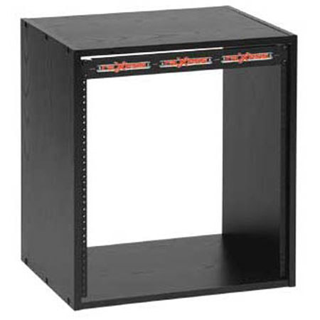 The Raxxess 12U Economy Rack (18" Depth) is a simple and sweet design that is perfect for your gear. More than 5/8" medium density fiberboard is covered with black oak laminate for an attractive finish that will match your existing equipment and racks. This is an affordable solution to any media center.