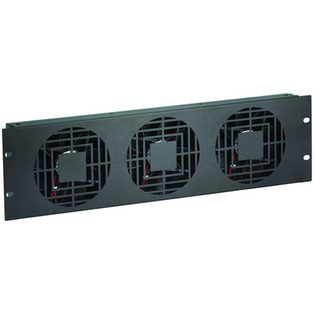The Raxxess 3U High Flow Triple Fan Panels moves 300 CFM of air. The front panel is made of attractive brushed black anodized aluminum to fit into any setting. Power supply is auto-ranging from 110 to 240VAC and 50 or 60 Hz.