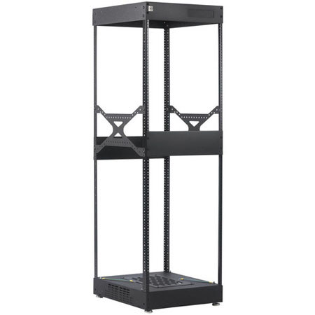 For quick cooling, a built-in blank panel covering the top of the rack prevents warm exhaust air from circulating to the front of the cabinet. Included floor levelers ensure the rack stands at level on the surface.