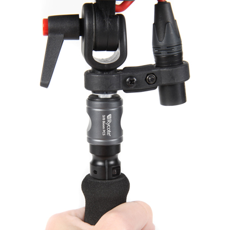 The Cyclone Handle PCS (Professional Connection System) is the perfect accessory kit for the Cyclone and Stereo Cyclone windshield. Not only does it allow the user to extend and hand-control their mic but also the user can quickly attach and detach the Cyclone using the highly innovative PCS feature. The kit comes complete with a PCS Cyclone Adapter and a PCS socket attached to the ergonomic soft grip handle featuring a 3/8" thread on the bottom end allowing for further extension or boom pole use. The Cyclone Handle PCS offers the versatility to provide the best possible audio for outdoor and indoor applications alike.
