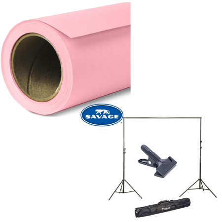Savage Widetone Seamless Background Paper, 107" wide x 36' Coral, #3 -Bundle With Flashpoint 10' Background Support System Air Cushioned, Flashpoint Clip Clamp with 2" Jaw