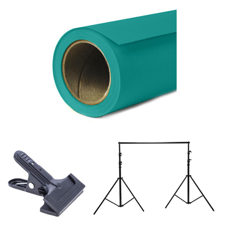 The Widetone Seamless Background Paper offers a non-reflective, fine-tooth surface that provides a smooth, even background. Its vibrant teal color enhances the visual appeal of portraits, commercial shoots, and product photography.