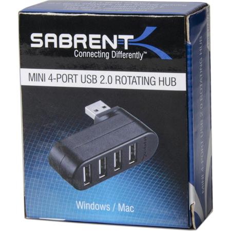 Add up to 4 peripherals quickly and easily with the Sabrent HB-UMN4 USB 2.0 Rotatable Hub. Especially great for notebooks which come with only a few ports in an era when you need to attach many USB devices at once, such as a printer, card reader, cell phone, iPod, thumb drive, mouse, keyboard or an external hard drive. Achieve full 480 Mbps on each port or daisy chain multiple hubs to a maximum of 127 devices. Fully backwards compatible with the USB 1.1 products